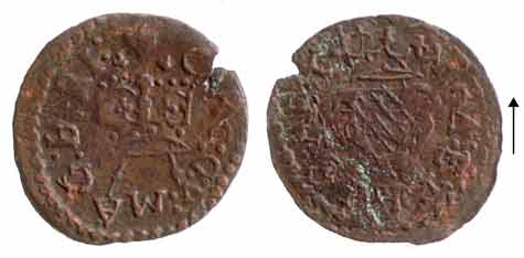FORGERY POINTERS ObverseBlundered crown, 4 jewels